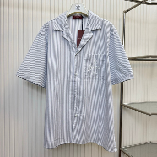 구찌 2026SS 크라운 로고프린트 스트라이프 반팔 셔츠 쇼츠 세트 블루 Gucci 2026 SS Crown Logo Print Stripe Short Sleeve Shirt Shorts Set Blue |