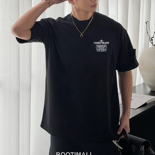 스톤아일랜드 2026SS 헤비코튼 로고패치 오버핏 반팔 블랙 티셔츠 Stone Island 2026 SS Heavy Cotton Logo Patch Oversized Short Sleeve Black T-Shirt |