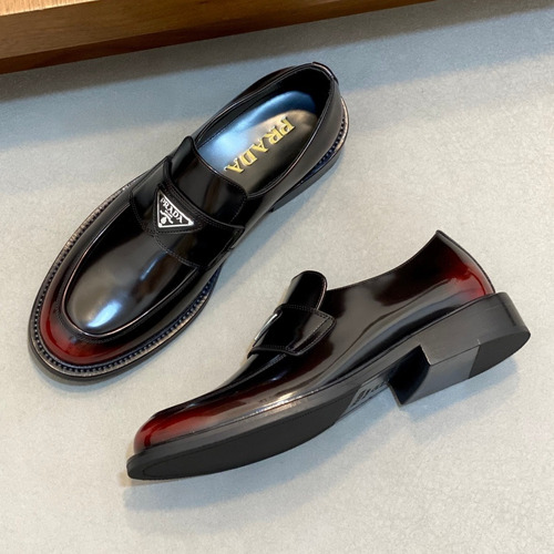 프라다 수입가죽 조각디테일 레이스업 블랙 더비슈즈 Prada Imported Leather Brogue Detail Black Derby Shoes |