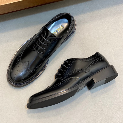 프라다 수입가죽 브로그디테일 레이스업 블랙 더비슈즈 Prada Imported Leather Brogue Detail Black Derby Shoes 1