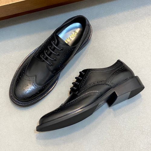 프라다 수입가죽 브로그디테일 레이스업 블랙 더비슈즈 Prada Imported Leather Brogue Detail Black Derby Shoes |