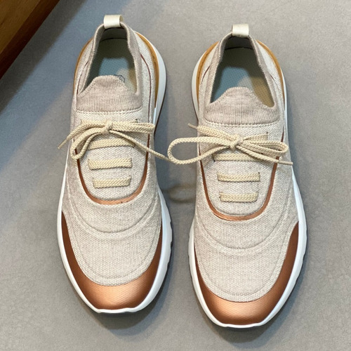 브루넬로쿠치넬리 스웨이드 니트믹스 로우탑 베이지 스니커즈 Brunello Cucinelli Suede Knit Mix Low-top Beige Sneakers |