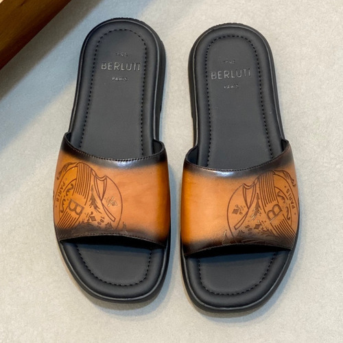 벨루티 송아지가죽 핸드페인팅 오픈백 브라운 뮬 슬리퍼 Berluti Calfskin Hand-painted Open-back Brown Mule Slippers |