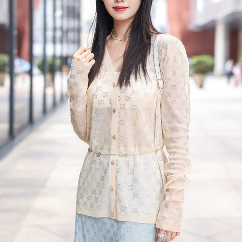 구찌 2026SS 실크 GG 크리스탈자수 슬림핏 브이넥 긴팔 가디건 Gucci 2026 SS Silk GG Crystal Embroidered Slim Fit V Neck Long Sleeve Cardigan |