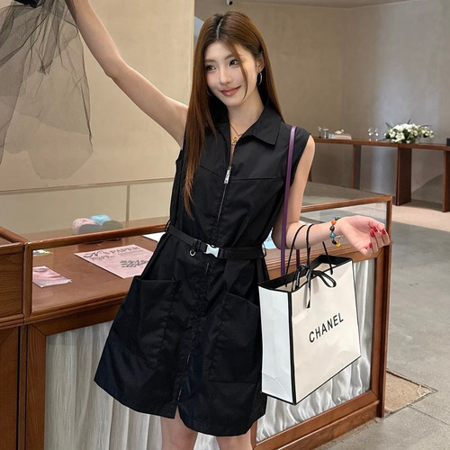 프라다 2026SS 리나일론 트라이앵글로고 플레어핏 미니 슬리브리스 원피스 Prada 2026 SS Re Nylon Triangle Logo Flared Mini Sleeveless Dress |