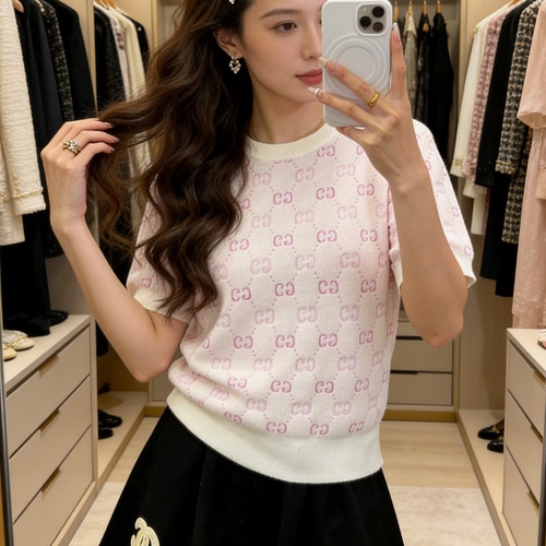 구찌 2026SS 울텐셀 GG자카드 슬림핏 반팔 니트 Gucci 2026 SS Wool Tencel GG Jacquard Slim Fit Short Sleeve Knit |