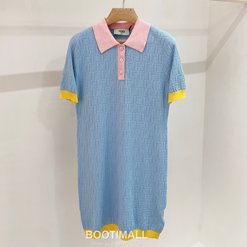 펜디 2026SS 코튼혼방 FF자카드 폴로칼라 슬림핏 미니 반팔 원피스 Fendi 2026 SS Cotton Blend FF Jacquard Polo Collar Slim Fit Mini Short Sleeve Dress |