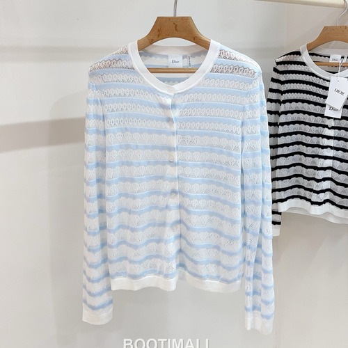 디올 2026SS 레이스니트 마리니에르 스트라이프 슬림핏 브이넥 긴팔 가디건 Dior 2026 SS Lace Knit Mariniere Stripe Slim Fit V Neck Long Sleeve Cardigan |