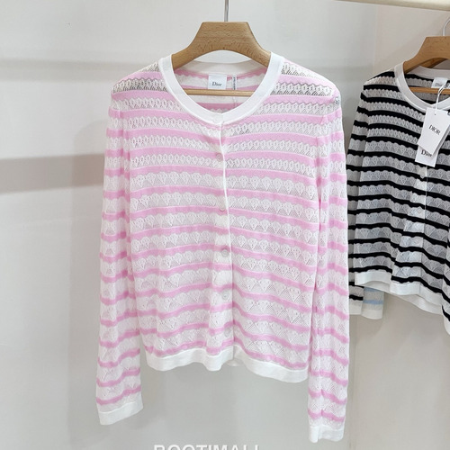 디올 2026SS 레이스니트 마리니에르 스트라이프 슬림핏 브이넥 긴팔 가디건 Dior 2026 SS Lace Knit Mariniere Stripe Slim Fit V Neck Long Sleeve Cardigan |