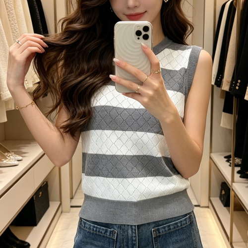디올 2026SS 캐시미어실크 혼방 스트라이프 다이아자카드 로고자수 슬림핏 슬리브리스 니트 Dior 2026 SS Cashmere Silk Blend Stripe Diamond Jacquard Logo Embroidered Slim Fit Sleeveless Knit |