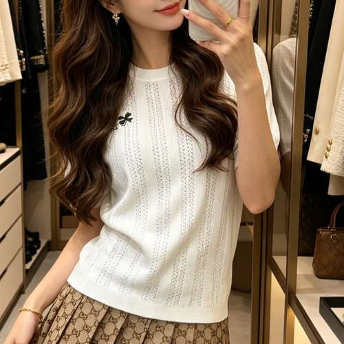 - 단독 및 레이어드 모두 활용 가능한 반팔 니트입니다.