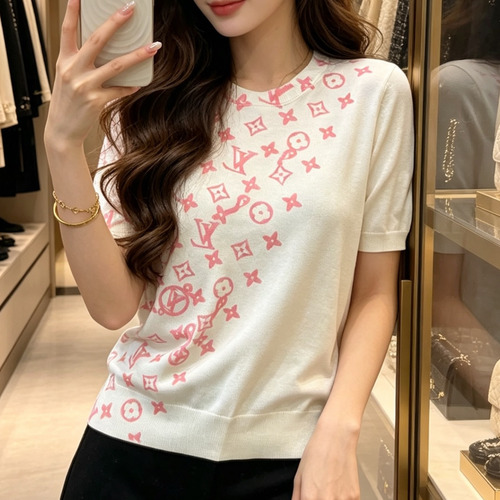 디올 2026SS 실크혼방 하프컬러 로고프린트 레귤러핏 반팔 니트 Dior 2026 SS Silk Blend Half Color Logo Print Regular Fit Short Sleeve Knit |