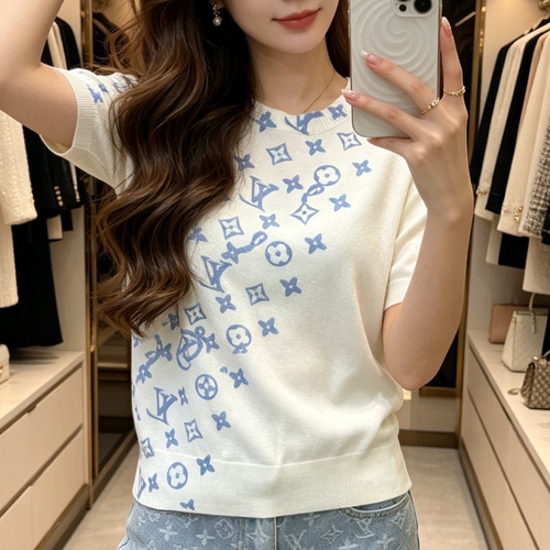 디올 2026SS 실크혼방 하프컬러 로고프린트 레귤러핏 반팔 니트 Dior 2026 SS Silk Blend Half Color Logo Print Regular Fit Short Sleeve Knit |