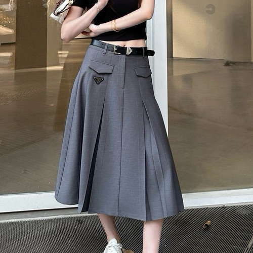 프라다 2026SS 기능성 패브릭 플리츠 벨티드 하이웨스트 A라인 미디 스커트 Prada 2026 SS Functional Fabric Pleated Belted High Waist A Line Midi Skirt |