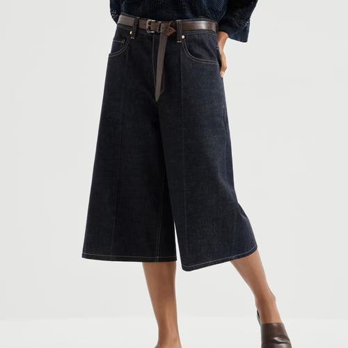 브루넬로 쿠치넬리 2026SS 코튼 데님 크롭 세미와이드 스트레이트핏 7부 팬츠 Brunello Cucinelli 2026 SS Cotton Denim Cropped Semi Wide Straight Fit Capri Pants |