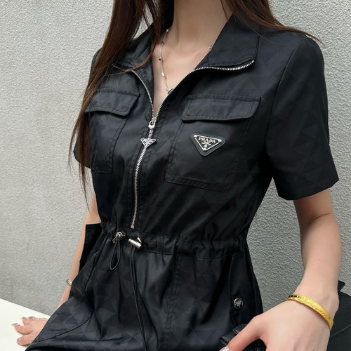제품명 프라다 2026SS 리나일론 삼각자카드 로고 하프집업 폴로카라 A라인 반팔 원피스 Prada 2026 SS Re Nylon Triangle Jacquard Logo Half Zip Polo Collar A Line Short Sleeve Dress