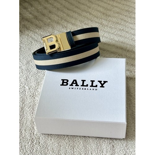 발리 캔버스 송아지가죽 트레인스트라이프 캐주얼 벨트 Bally Canvas Calfskin Train Stripe Casual Belt 3.5cm 5