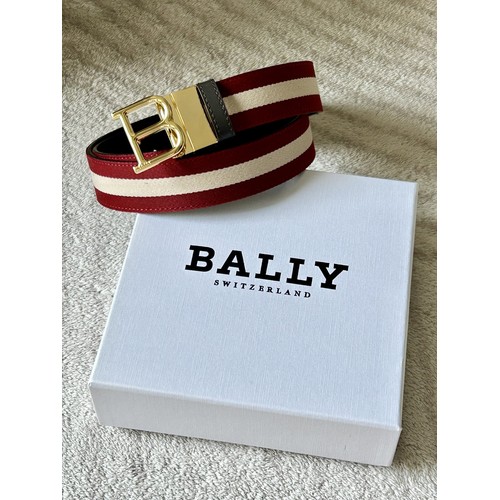 발리 캔버스 송아지가죽 트레인스트라이프 캐주얼 벨트 Bally Canvas Calfskin Train Stripe Casual Belt 3.5cm 7
