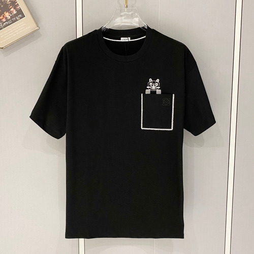 로에베 2025SS 헤비코튼 베어포켓자수 루즈핏 반팔 티셔츠 Loewe 2025 SS Heavy Cotton Bear Pocket Embroidery Loose Fit Short Sleeve T-Shirt |