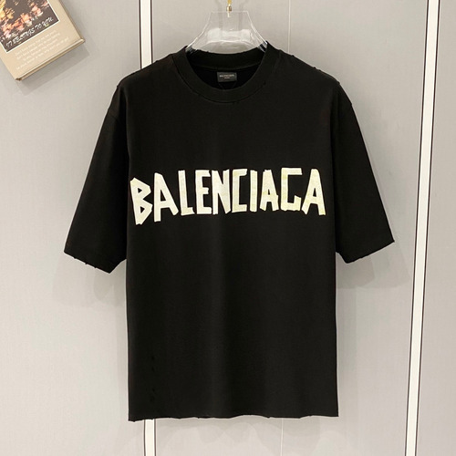 발렌시아가 2026SS 헤비코튼 테이프로고 디스트레스 루즈핏 반팔 티셔츠 Balenciaga 2026 SS Heavy Cotton Tape Logo Distressed Loose Fit Short Sleeve T-Shirt |