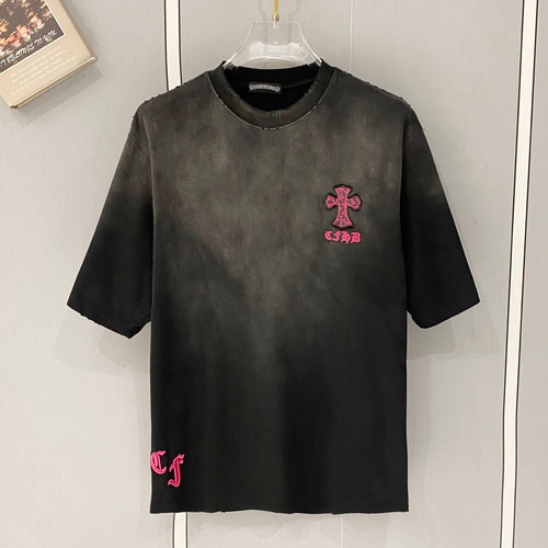 크롬하츠 2026SS 헤비코튼 크로스패치자수 디스트레스 루즈핏 반팔 티셔츠 Chrome Hearts 2026 SS Heavy Cotton Cross Patch Embroidery Distressed Loose Fit Short Sleeve T-Shirt |