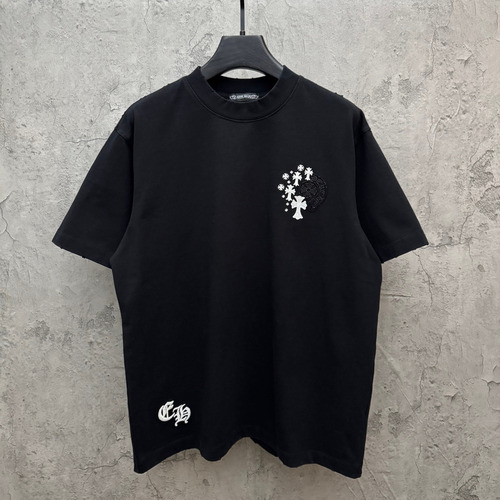 크롬하츠 2026SS 헤비코튼 스팽글 3D홀자수 UV변색 루즈핏 반팔 티셔츠 Chrome Hearts 2026 SS Heavy Cotton Sequin 3D Hollow Embroidery UV Color Changing Loose Fit Short Sleeve T-Shirt 9611