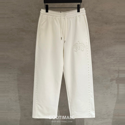 크롬하츠 헤비웨이트 진주 레더패치 루즈핏 블랙 스웨트팬츠 Chrome Hearts Heavyweight Pearl Leather Patch Loose Fit Black Sweatpants D47 1