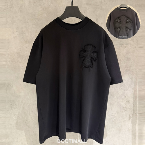 크롬하츠 헤비코튼 자수 디스트로이드 루즈핏 블랙 반팔 티셔츠 Chrome Hearts Heavy Cotton Embroidered Distressed Loose Fit Black T-Shirt K186 |