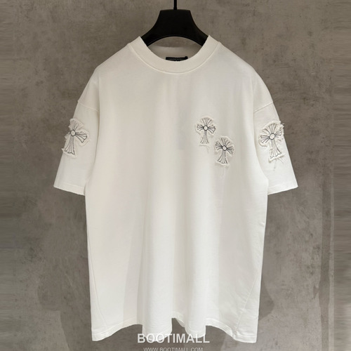 탄탄한 헤비코튼 원단과 자수 디테일이 결합된 크롬하츠 티셔츠는 스트리트 감성과 완성도 높은 마감이 돋보이는 아이템입니다. 340g 중량의 더블 코튼 원단을 사용해 안정적인 실루엣을 형성하며, 두 차례 워싱 공정을 통해 부드러운 촉감과 자연스러운 컬러 표현을 동시에 구현했습니다. 전면과 후면에 배치된 자수 디테일이 시각적인 포인트를 형성하고, 사방에 더해진 디스트로이드 마감이 거친 질감을 더해 개성 있는 스타일을 완성합니다. 넥라인에는 쿨링 특성이 있는 소로나 소재를 적용해 쾌적한 착용감을 제공하며, 여유 있는 루즈핏 구조로 다양한 체형에 편안하게 착용 가능합니다. 변형과 수축을 최소화한 안정적인 완성도로 데일리 활용도가 높은 제품입니다. 구성품: 본품 340g 헤비코튼 더블 원단으로 제작된 루즈핏 반팔 티셔츠입니다. 전후면 자수 디테일과 디스트로이드 마감이 적용된 디자인입니다. 두 차례 워싱 공정으로 부드러운 촉감과 자연스러운 컬러감을 구현했습니다. 소로나 넥라인으로 쾌적한 착용감을 제공합니다. 블랙과 화이트 컬러로 구성된 데일리 활용도 높은 제품입니다. ■ 사이즈 정보 S: 상세 사이즈 미표기 M: 상세 사이즈 미표기 L: 상세 사이즈 미표기 XL: 상세 사이즈 미표기 2XL: 상세 사이즈 미표기