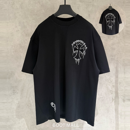 크롬하츠 헤비코튼 자수 디스트로이드 루즈핏 블랙 반팔 티셔츠 Chrome Hearts Heavy Cotton Embroidered Distressed Loose Fit Black T-Shirt K210 |