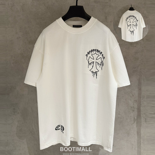 크롬하츠 헤비코튼 자수 디스트로이드 루즈핏 블랙 반팔 티셔츠 Chrome Hearts Heavy Cotton Embroidered Distressed Loose Fit Black T-Shirt K210 |