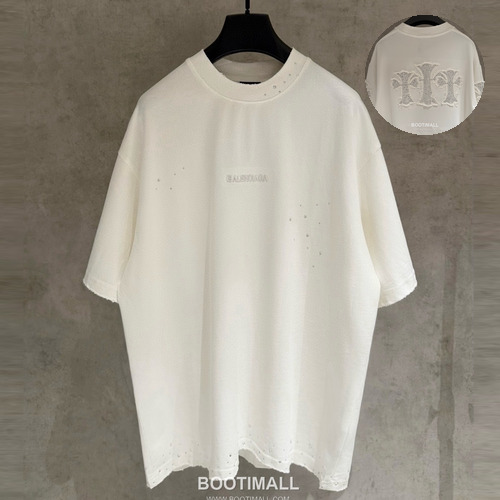 광택감 있는 장식과 자수 디테일이 어우러진 이 제품은 크롬하츠 특유의 강렬한 스트리트 감성을 보여주는 티셔츠입니다. 340g 중량의 더블 코튼 원단을 사용해 탄탄한 실루엣을 유지하며, 두 차례 워싱 공정을 통해 부드러운 촉감과 자연스러운 컬러 표현을 구현했습니다. 전면과 후면에는 자수와 장식 디테일이 함께 적용되어 입체감 있는 시각 효과를 형성하고, 사방의 디스트로이드 마감이 거친 질감을 더해 개성 있는 스타일을 완성합니다. 넥라인에는 쿨링 특성이 있는 소로나 소재를 적용해 쾌적한 착용감을 제공하며, 여유 있는 루즈핏 구조로 다양한 체형에 편안하게 착용 가능합니다. 변형과 수축을 최소화한 안정적인 완성도로 데일리 스타일링에 적합한 아이템입니다. 구성품: 본품 340g 헤비코튼 더블 원단으로 제작된 루즈핏 반팔 티셔츠입니다. 자수와 장식 디테일이 적용된 디자인입니다. 두 차례 워싱 공정으로 부드러운 촉감과 자연스러운 컬러감을 구현했습니다. 소로나 넥라인으로 쾌적한 착용감을 제공합니다. 블랙과 화이트 컬러로 구성된 스트리트 감성 아이템입니다. ■ 사이즈 정보 S: 상세 사이즈 미표기 M: 상세 사이즈 미표기 L: 상세 사이즈 미표기 XL: 상세 사이즈 미표기 2XL: 상세 사이즈 미표기