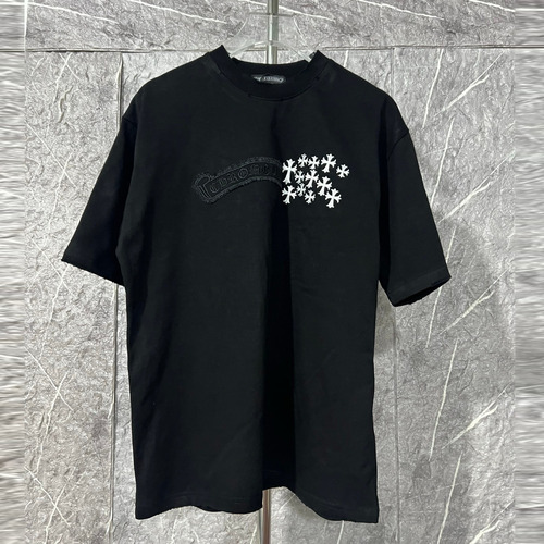 크롬하츠 헤비코튼 자수 디스트로이드 루즈핏 블랙 반팔 티셔츠 Chrome Hearts Heavy Cotton Embroidered Distressed Loose Fit Black T-Shirt CH005 |
