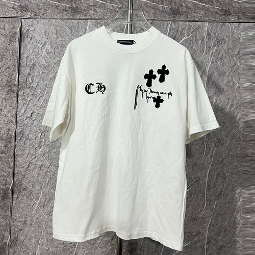 간결한 루즈핏 실루엣에 자수와 디스트로이드 디테일을 더한 이 제품은 크롬하츠 특유의 스트리트 감성이 강조된 티셔츠입니다. 320g 중량의 더블 코튼 원단을 사용해 안정적인 형태감을 유지하며, 두 차례 워싱 공정을 통해 부드러운 촉감과 자연스러운 컬러 표현을 동시에 구현했습니다. 전면과 후면에 배치된 자수 디테일이 시각적인 포인트를 형성하고, 사방의 디스트로이드 마감이 거친 질감을 더해 개성 있는 스타일을 완성합니다. 넥라인에는 쿨링 특성이 있는 소로나 소재를 적용해 쾌적한 착용감을 제공하며, 여유 있는 루즈핏 구조로 다양한 체형에 편안하게 착용 가능합니다. 변형과 수축을 최소화한 안정적인 완성도로 데일리 스타일링에 활용도가 높은 아이템입니다. 구성품: 본품 320g 헤비코튼 더블 원단으로 제작된 루즈핏 반팔 티셔츠입니다. 전후면 자수 디테일과 디스트로이드 마감이 적용된 디자인입니다. 두 차례 워싱 공정으로 부드러운 촉감과 자연스러운 컬러감을 구현했습니다. 소로나 넥라인으로 쾌적한 착용감을 제공합니다. 블랙과 화이트 컬러로 구성된 데일리 활용도 높은 제품입니다. ■ 사이즈 정보 M: 상세 사이즈 미표기 L: 상세 사이즈 미표기 XL: 상세 사이즈 미표기 2XL: 상세 사이즈 미표기