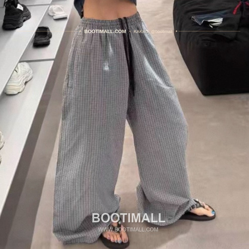 발렌시아가 2025SS 체크패턴 루즈핏 드로스트링 와이드팬츠 Balenciaga 2025 SS Check Pattern Loose Fit Drawstring Wide Pants |