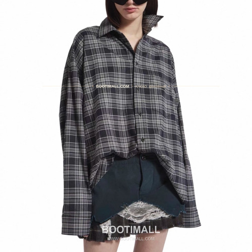 발렌시아가 2026SS 블랙그레이 체크 로고자수 루즈핏 코튼 셔츠 Balenciaga 2026 SS Black Grey Check Logo Embroidered Loose Fit Cotton Shirt |