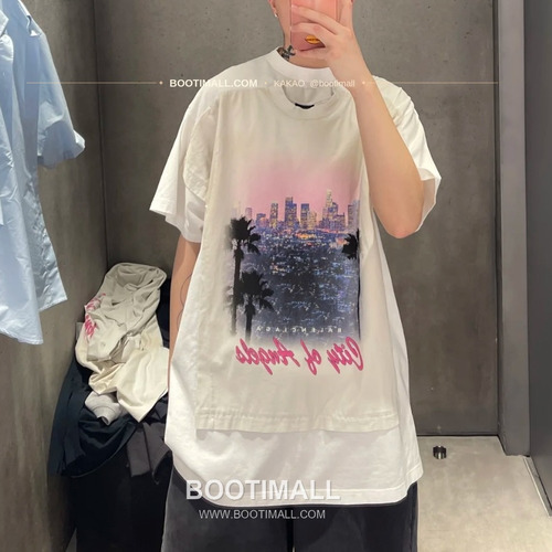 발렌시아가 2025SS LA프린트 레이어드 워싱 루즈핏 반팔 티셔츠 Balenciaga 2025 SS LA Print Layered Washed Loose Fit Short Sleeve T-Shirt |