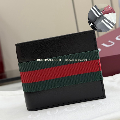 구찌 소프트 레더 웹 스트랩 반지갑 블랙 Gucci Soft Leather Web Strap Bi-Fold Wallet Black 867269 11cm |