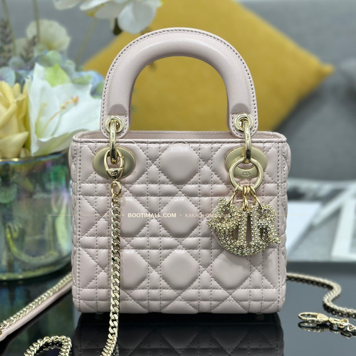 디올 레이디 디올 램스킨 까나쥬 크리스탈 D.I.O.R 참 미니 체인 숄더백 Dior Lady Dior Lambskin Cannage Crystal D.I.O.R Charm Mini Chain Shoulder Bag M0505 17cm 1