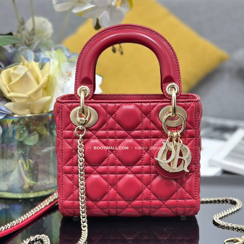 디올 레이디 디올 램스킨 까나쥬 다이아 버클 D.I.O.R 참 미니 체인 숄더백 Dior Lady Dior Lambskin Cannage Diamond Buckle D.I.O.R Charm Mini Chain Shoulder Bag M0505 17cm |