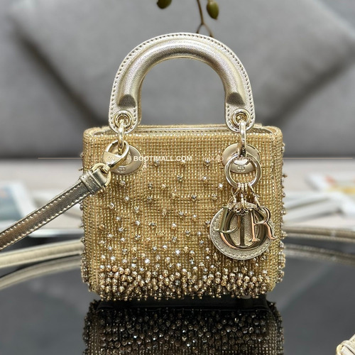 디올 레이디 디올 새틴 그라데이션 크리스탈 자수 D.I.O.R 참 초미니 체인 숄더백 Dior Lady Dior Satin Gradient Crystal Embroidered D.I.O.R Charm Micro Chain Shoulder Bag S0856 12cm