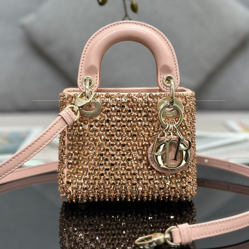 디테일 크리스탈 자수, D.I.O.R 참, 체인 스트랩, 가죽 스트랩