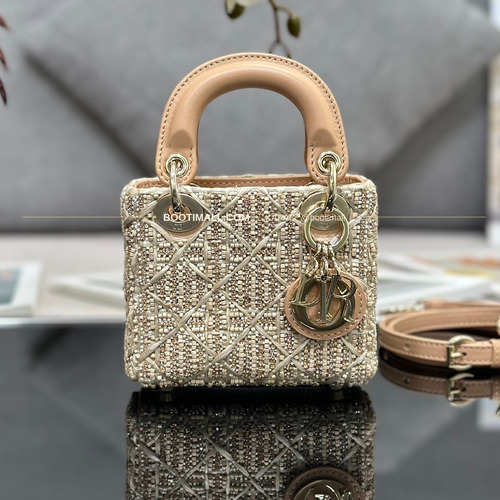 디올 레이디 디올 새틴 우드 비즈 크리스탈 자수 D.I.O.R 참 초미니 체인 숄더백 Dior Lady Dior Satin Wood Bead Crystal Embroidered D.I.O.R Charm Micro Chain Shoulder Bag S0856 12cm |