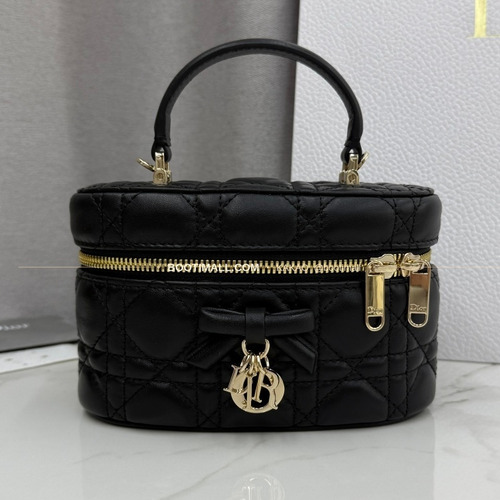 디테일 까나쥬 퀼팅, 보우 장식, D.I.O.R 참, 더블 지퍼