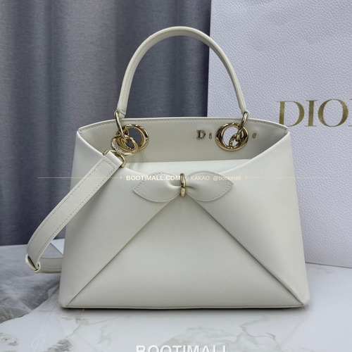디올 2026SS 레더 보우디테일 화이트 토트백 Dior 2026 SS Leather Bow Detail White Tote Bag 7038 28cm |