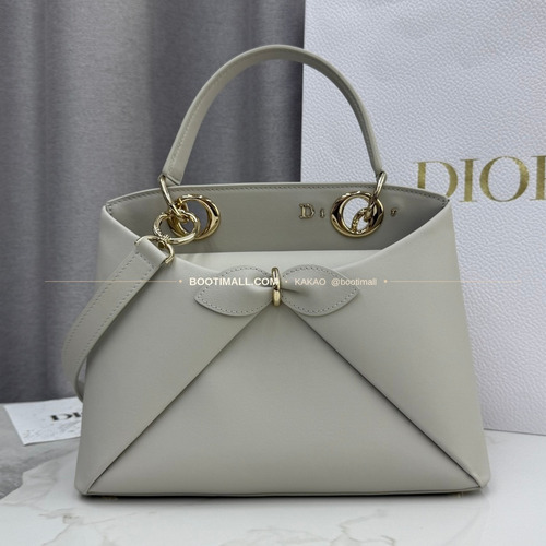 디올 2026SS 레더 보우디테일 화이트 토트백 Dior 2026 SS Leather Bow Detail White Tote Bag 7038 28cm |