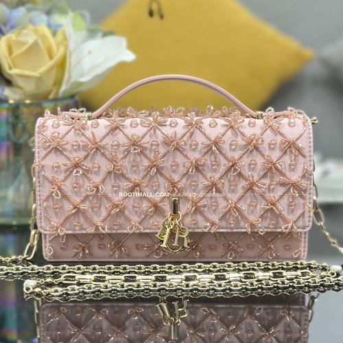 디테일 자수 비즈, 보우 디테일, D.I.O.R. 레터 참, 상단 핸들