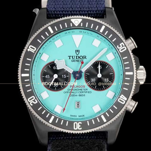 • 43mm 카본 복합 케이스로 가볍고 강한 내구성을 제공합니다. • 블루 다이얼과 레드 디테일로 뛰어난 시인성을 제공합니다. • 7750 기반 자동 크로노그래프 무브먼트로 안정적인 성능을 제공합니다. • 양방향 회전 베젤과 120클릭 구조로 정밀한 조작이 가능합니다. • 일체형 직조 스트랩으로 편안한 착용감을 제공합니다. • 정품 박스, 더스트백, 구매 영수증이 포함된 풀 패키지로 제공됩니다. |