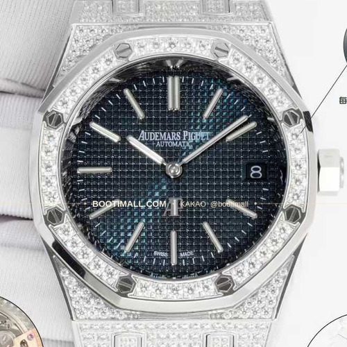 풀 다이아몬드 세팅과 화이트골드 톤이 돋보이는 오데마피게 로열오크 시계는 고급스러운 디자인과 정교한 마감을 갖춘 오토매틱 모델입니다. 39mm 케이스와 9mm 초슬림 두께로 제작되어 손목 위에서 세련된 착용감을 제공하며, 아이코닉한 팔각형 베젤 디자인과 전체 다이아몬드 세팅이 강렬한 존재감을 완성합니다. 빛의 각도에 따라 다양한 반짝임을 연출하여 고급스러운 분위기를 강조합니다. 구성품: 정품 박스, 보증서, 쇼핑백, 구매 영수증 포함 로열오크 라인의 아이코닉한 디자인이 반영된 모델입니다. 풀 다이아몬드 세팅으로 화려한 분위기를 제공합니다. 39mm 사이즈로 세련된 착용감을 제공합니다. 자동 무브먼트 기반으로 안정적인 사용이 가능합니다.