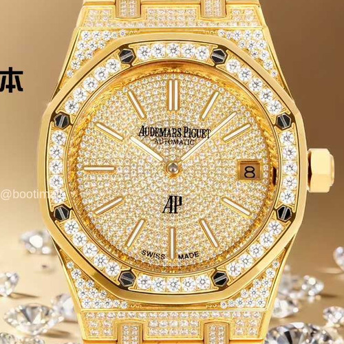 풀 다이아몬드 세팅과 화이트골드 톤이 돋보이는 오데마피게 로열오크 시계는 고급스러운 디자인과 정교한 마감을 갖춘 오토매틱 모델입니다. 39mm 케이스와 9mm 초슬림 두께로 제작되어 손목 위에서 세련된 착용감을 제공하며, 아이코닉한 팔각형 베젤 디자인과 전체 다이아몬드 세팅이 강렬한 존재감을 완성합니다. 빛의 각도에 따라 다양한 반짝임을 연출하여 고급스러운 분위기를 강조합니다. 구성품: 정품 박스, 보증서, 쇼핑백, 구매 영수증 포함 로열오크 라인의 아이코닉한 디자인이 반영된 모델입니다. 풀 다이아몬드 세팅으로 화려한 분위기를 제공합니다. 39mm 사이즈로 세련된 착용감을 제공합니다. 자동 무브먼트 기반으로 안정적인 사용이 가능합니다.
